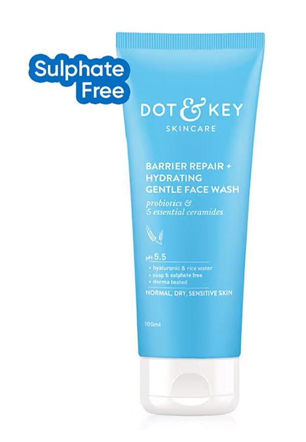 Dot & Key Barrier Repair + Hydrating Gentle Face Wash with Probiotics & Ceramides | For Dry, Sensitive Skin | Soap-Free | pH Balanced | For Women and Men | 100ml