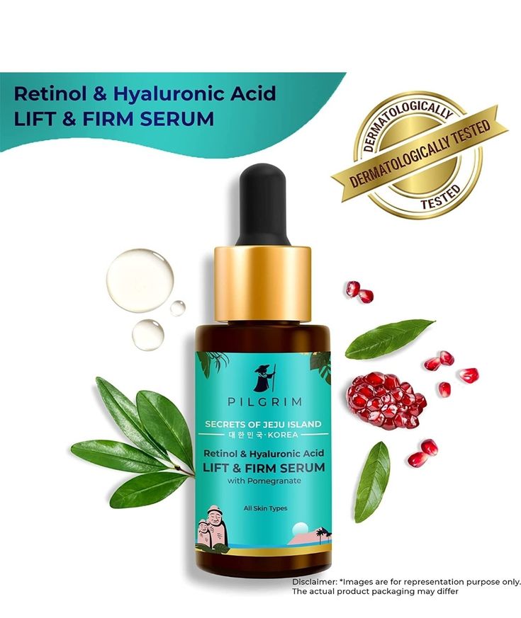 • 0.5% Retinol + 1% Hyaluronic Acid: pilgrim face serum Retinol smooths fine lines and stimulates collagen production; HA delivers deep hydration for firmer, plumper skin.